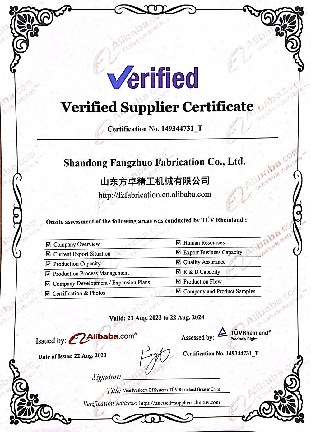 Shandong Fangzhuo Fabrication Co, Ltd. was established in December2018, with a registered capital of 10 million yuan and more than 100 employees.